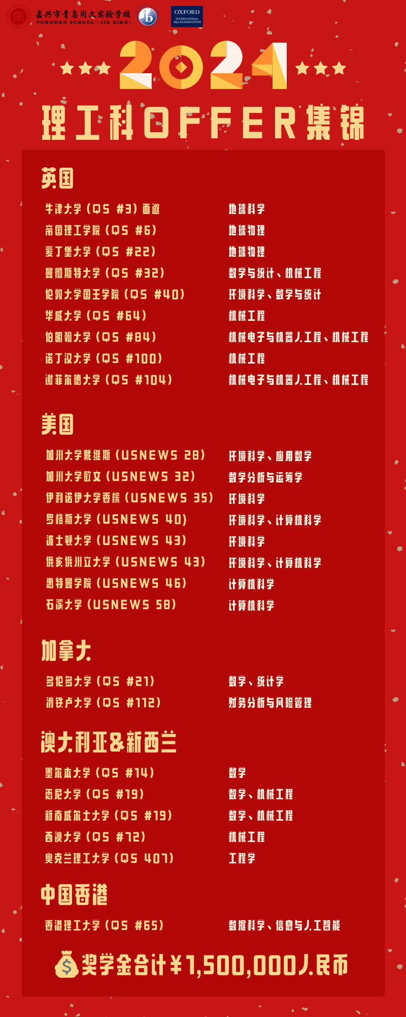 在剛剛過(guò)去的申請(qǐng)季,2024屆畢業(yè)生們?cè)诶砉た祁I(lǐng)域展現(xiàn)出了多元化的興趣,并且獲得了多所世界名校的錄取以及豐厚的獎(jiǎng)學(xué)金。