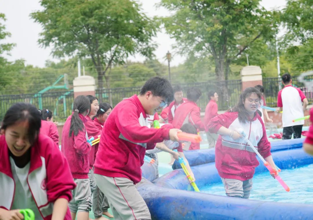 在同學(xué)們的盛情邀約下,平日里嚴(yán)肅的老師們也加入其中,師生同樂(lè),共享這份夏日的清涼。