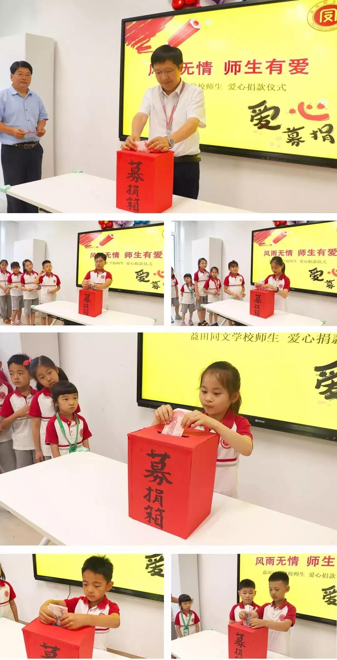 6月19日,益田同文學(xué)校校長孫清亞帶領(lǐng)廊坊全體師生,發(fā)起多日為受災(zāi)群眾獻(xiàn)愛心的募捐儀式。